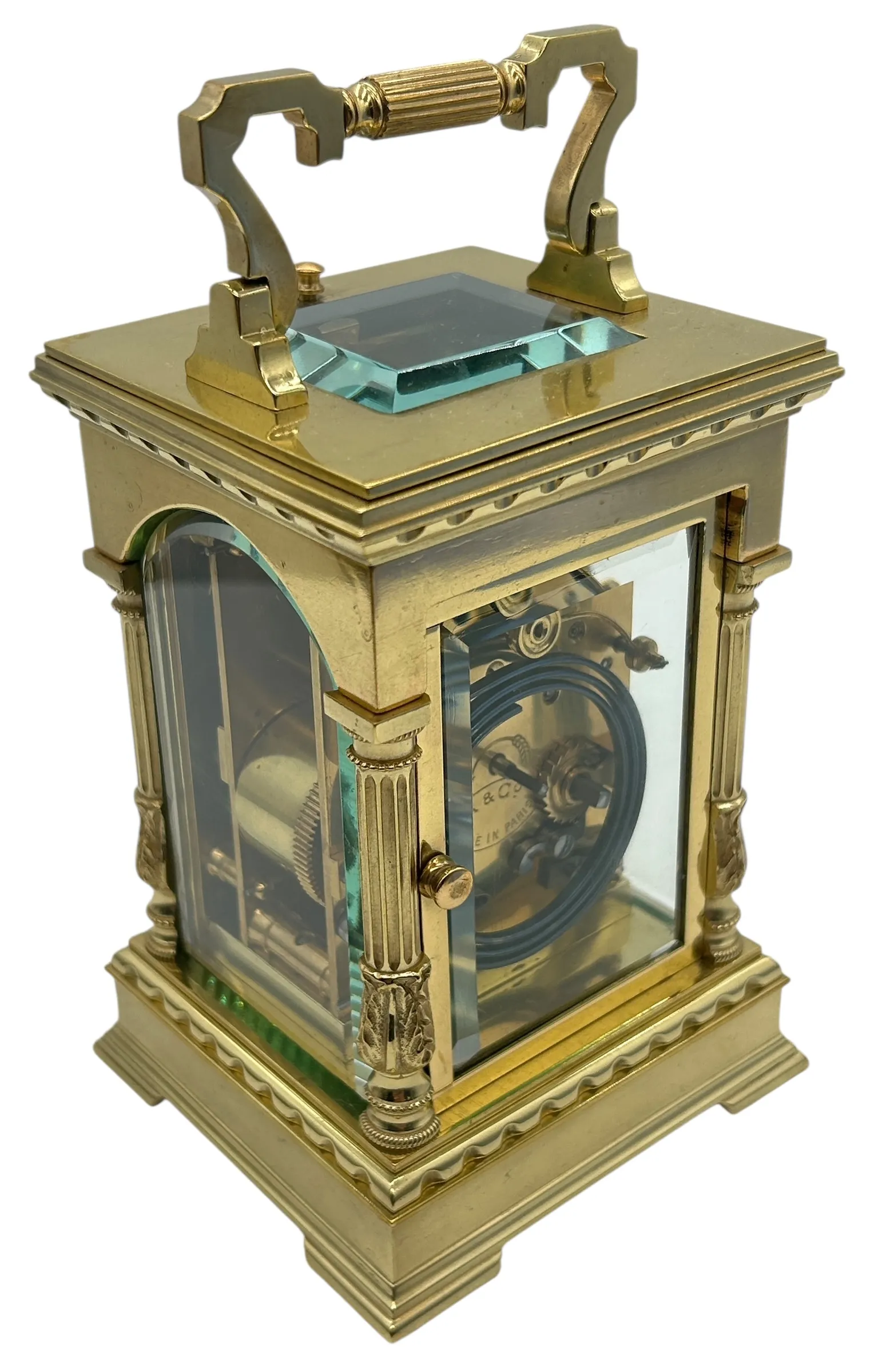 Incredible Architectural Carriage Clock with Brass and Enamel Masked Dial – French 8-Day Gong Striking Carriage Clock with Repeat Feature.