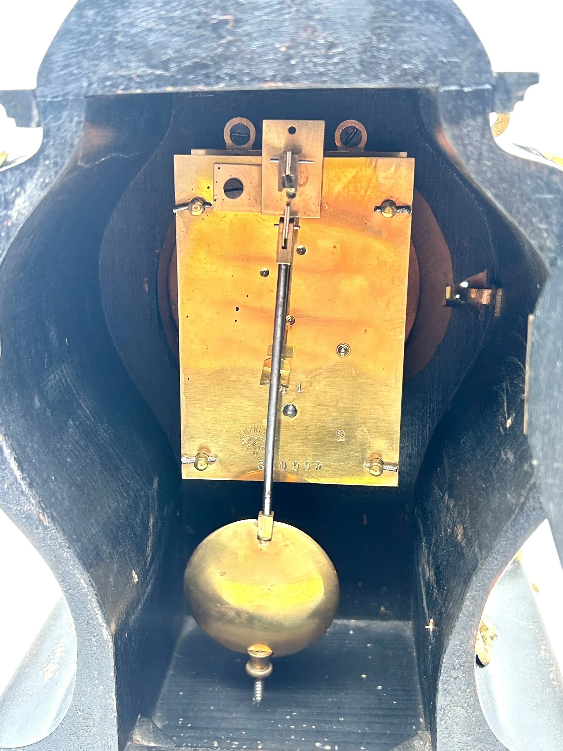 Incredible German Lenzkirch Mantel Clock, Ormolu Mounts Silver Dial