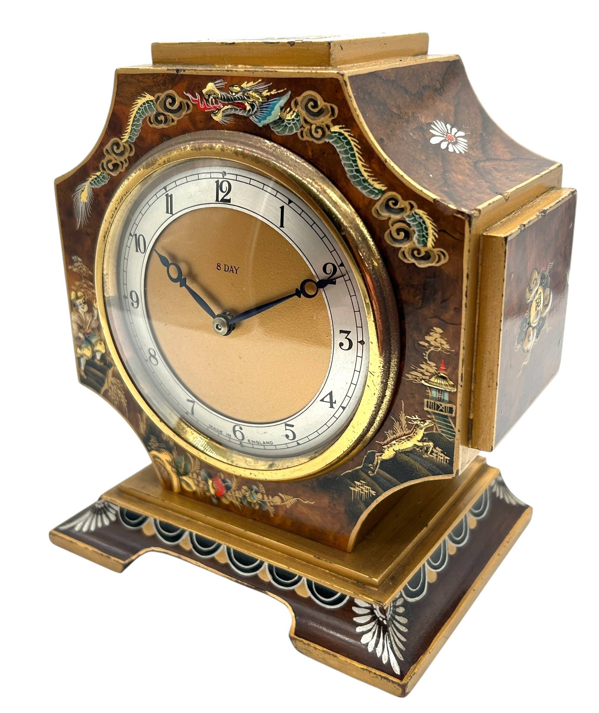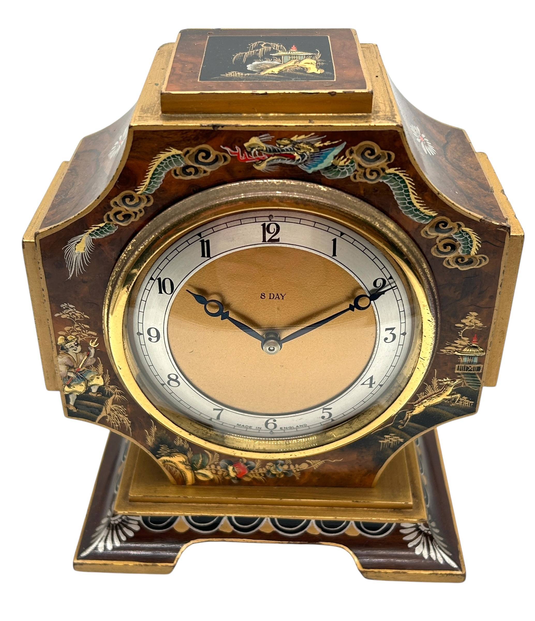 Interesting Chinoiserie Mantel Clock – Gilt Gold Decoration 8-day Clock