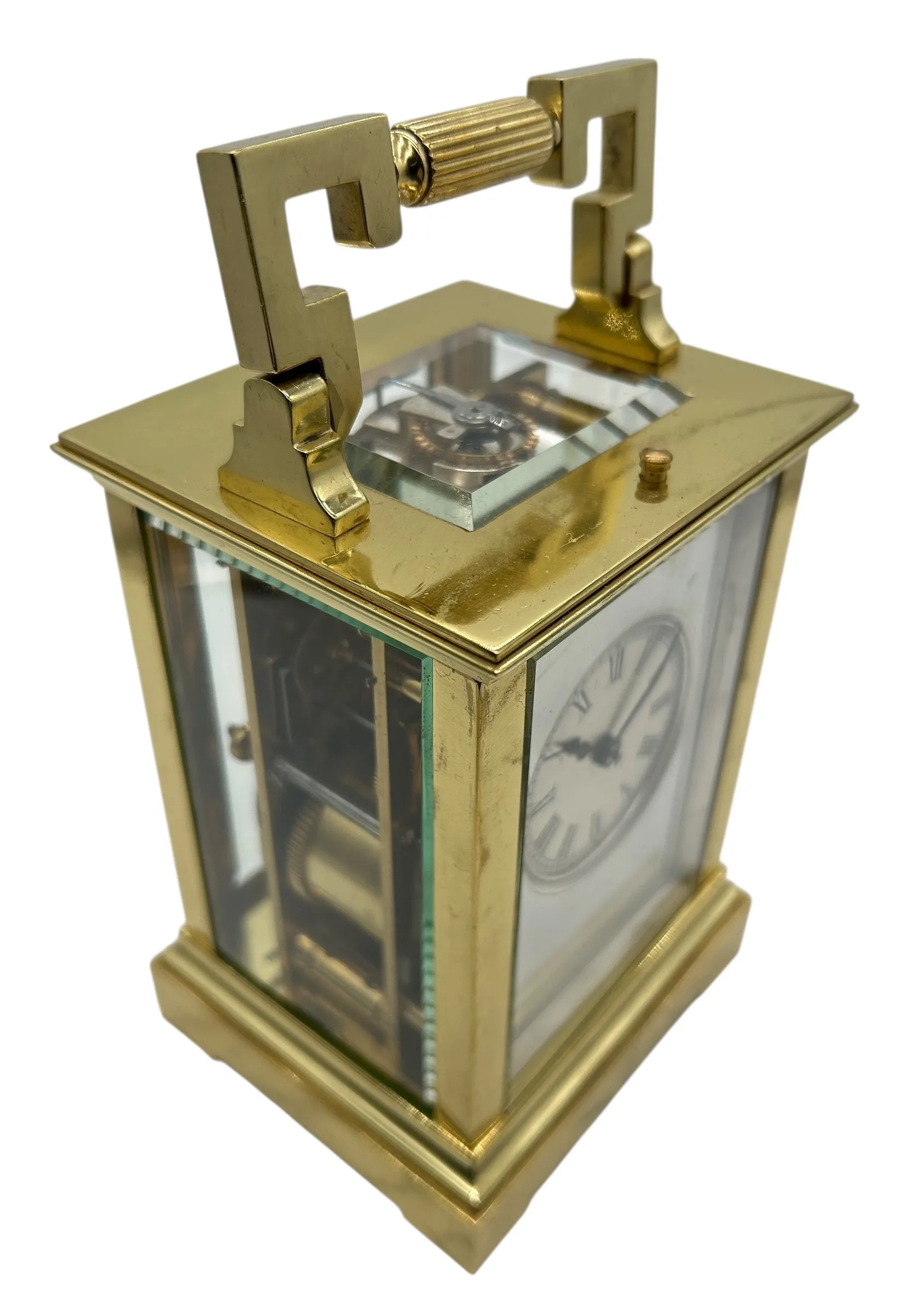 Victorian Mantel Clock Silver Masked Dial – French 8-Day Carriage Clock with Repeat Feature